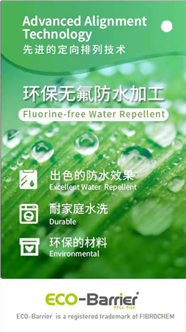 ECO-BARRIER基于高性能非F技术开发的防水产品,不含PFAS,含有绝大部分可再生资源。符合国标或者企标相关性能要求的,可以申请ECO-BARRIER吊牌