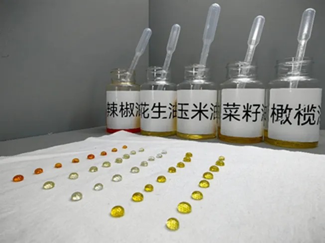 迄今,无氟防水剂在防水应用上已有了较快的发展。然而,由于表面张力较高,国内外企业的在售无氟产品,无论是丙烯酸酯类、聚氨酯类,还是有机硅类的防水剂,都无法赋予织物防油的性能,即便是生活中常见的植物油也无法防护(烃油表面张力通常在20~36 mN/m范围内,橄榄油的表面能约32 mN/m,根据类型,植物油的表面能通常低至30 mN/m)。因此,无氟整理剂的应用领域仍然受到很大限制。