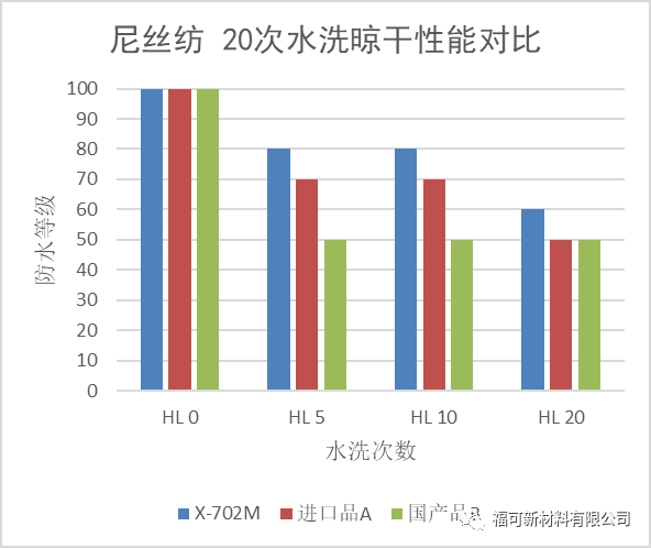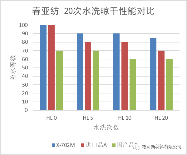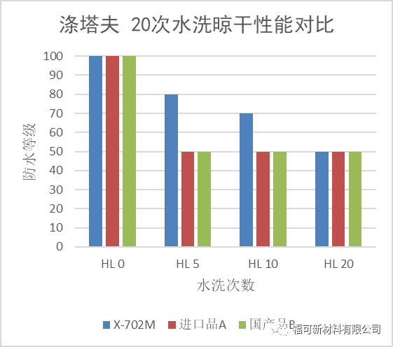 配方:防水剂50g/L,交联剂10g/L面料:涤塔夫、春亚纺、尼丝纺